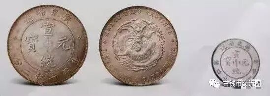 此版本流通后可能因中国物价较低,银毫足以应付日常之用,且找零方便,广东及邻近地区渐以行用一钱四分四厘的“二角”银毫为主。 清德宗于岁次戍申的光绪三十四年十月二十一日(1908年11月14日)驾崩,新帝溥仪于同年十一月十九日(1908年12月12日)登基,是为清穆宗,定年号“宣统”。次年各地就将所出银圆改换成“宣统元宝”,粤省也不例外,于宣统二年正月初一开始行用。同年度支部整顿币值将各省造币厂或裁或并,广东因绩效尚佳未被裁撤,改名为“度支部广州造币分厂”,并依令改产新版“大清银币”,但新模并未发下因此仍用旧版生产。直到宣统三年八月开制新国币,不料当月十九日(1911年10月10日)夜武昌新军起义,全国震动,粤厂遂停造新币又转而生产旧版银圆。宣统帝逊位后,广东龙银的生产随即走入了历史。 耿爱德根据所得海关资料统计,至1901年止,广东造币厂共造银币“一圆”4259115枚、“五角”226093枚、“二角”269113501枚、“一角”117081619枚、“五分”2509585枚。遗憾的是,他无法取得1902-1910年的数据,而1911年的数据是“二角”29214000枚。![]()