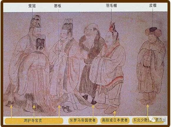 综上所述,唐章怀太子李贤墓墓道东壁中央所绘的《礼宾图》中戴鸟羽冠的人物是从渤海国到唐王朝进贡的使节的可能性很大。