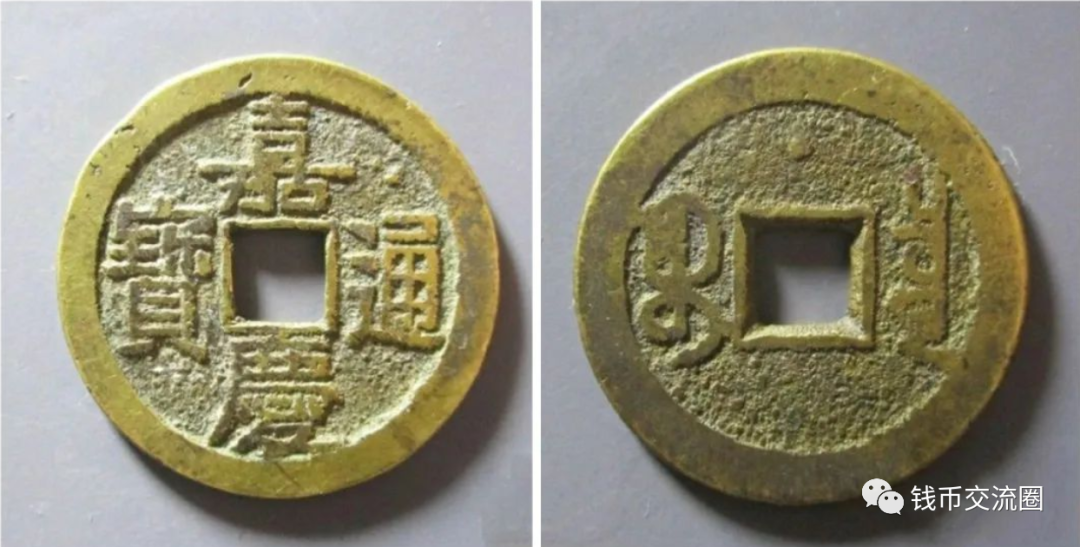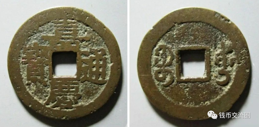 长庆版是嘉庆钱里比较有特色的品种,庆字心下比一般的要多一横(嘉庆通宝钱版式品种具多,但其中绝大部分都是嘉庆的庆字最下面的夂字省了一横)。一般的长庆好品现在400左右,方头通长庆更是里面的龙头,好品早已过千。![]()