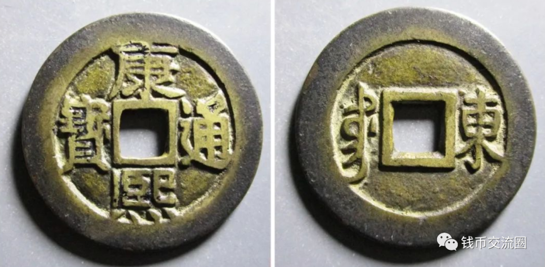 鱼钩东是康熙中的名誉品,典型特征主要有两点:(一)正面熙字第二点不出头,不上挑;(二)背面满文东的勾要接郭。