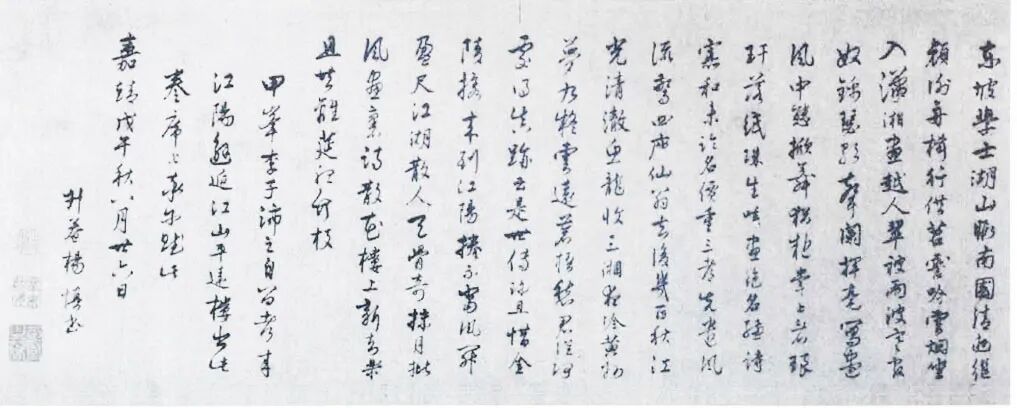 杨慎《题东坡潇湘竹石图卷》绢本行草 28×105.6cm 嘉靖三十七年(1558) 中国美术馆藏