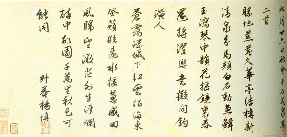 杨慎《石马泉亭诗页》冷金笺行书 21.4×47.1cm 北京故宫博物院藏