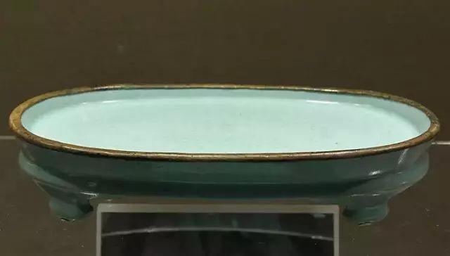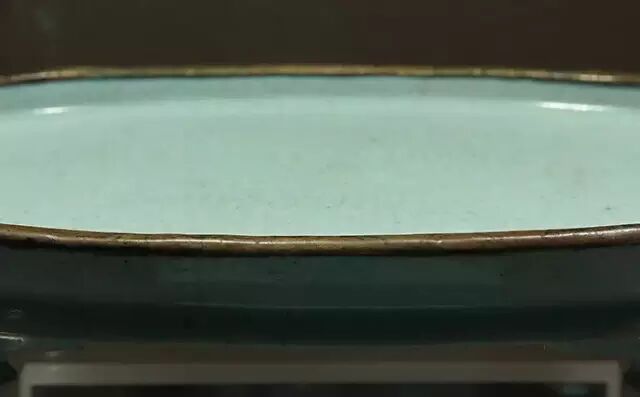 北宋 汝窑天青釉椭圆形水仙盆(修复)局部