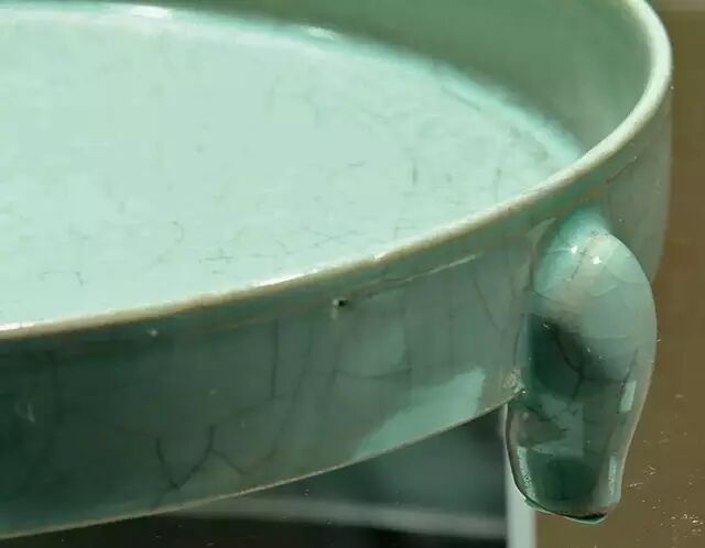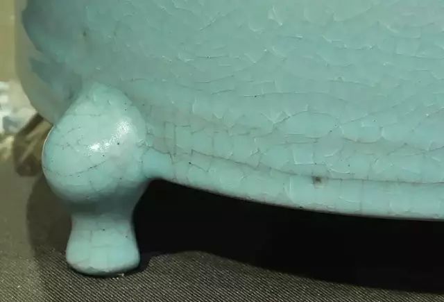 北宋 汝窑天青釉三足樽承盘 局部