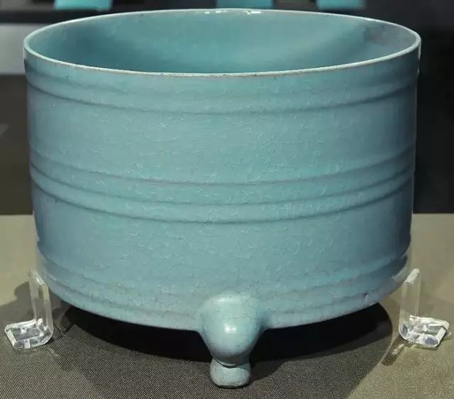 北宋 汝窑天青釉凸弦纹三足尊