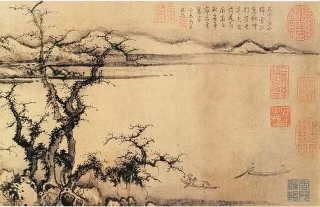 《雪江渔艇图》元 姚廷美 纸本墨笔 纵24.1厘米 横81.8厘米 北京故官博物院藏