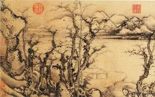 《暮云诗意图》元 马琬 绢本设色 纵95.6厘米 横56.3厘米 上海博物馆收藏