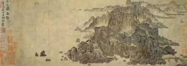 《丹山瀛海图》元 王蒙 纸本设色 纵28.5厘米 横80厘米 上海博物馆藏