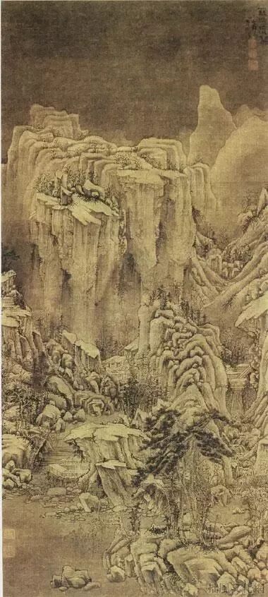 《雪冈渡关图》元 马琬 绢本墨笔 纵125.4厘米 横57.2厘米 北京故官博物院藏