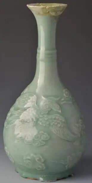 龙泉窑青釉刻云凤纹玉壶春瓷瓶【元】