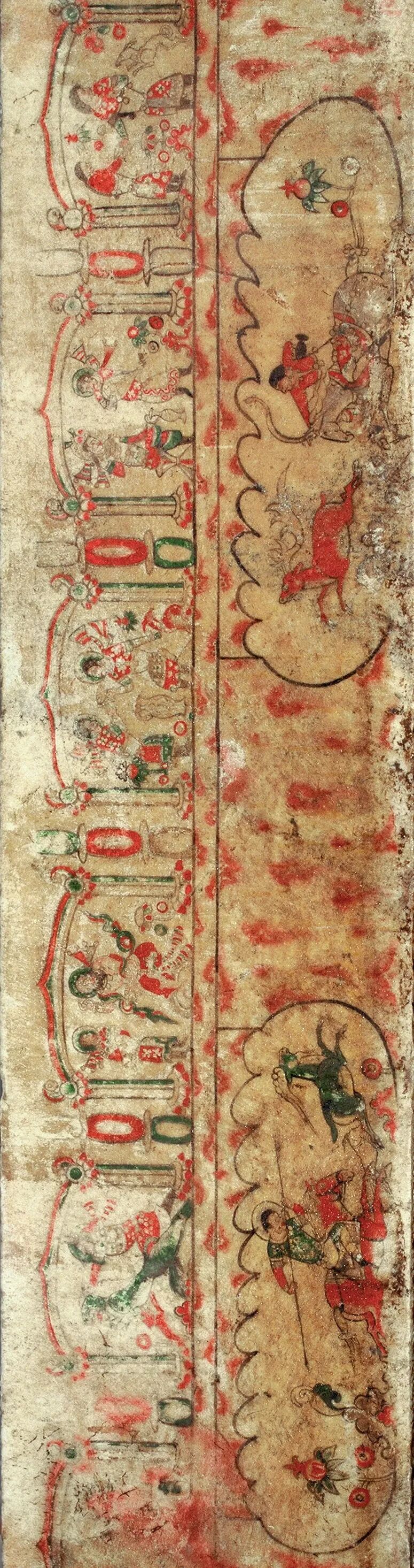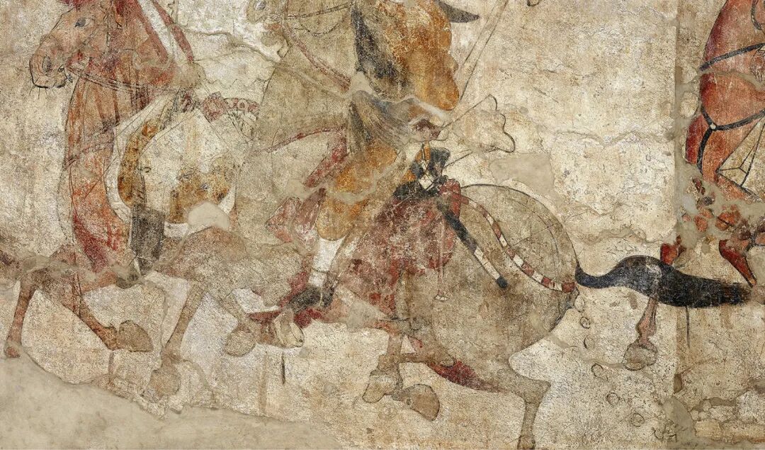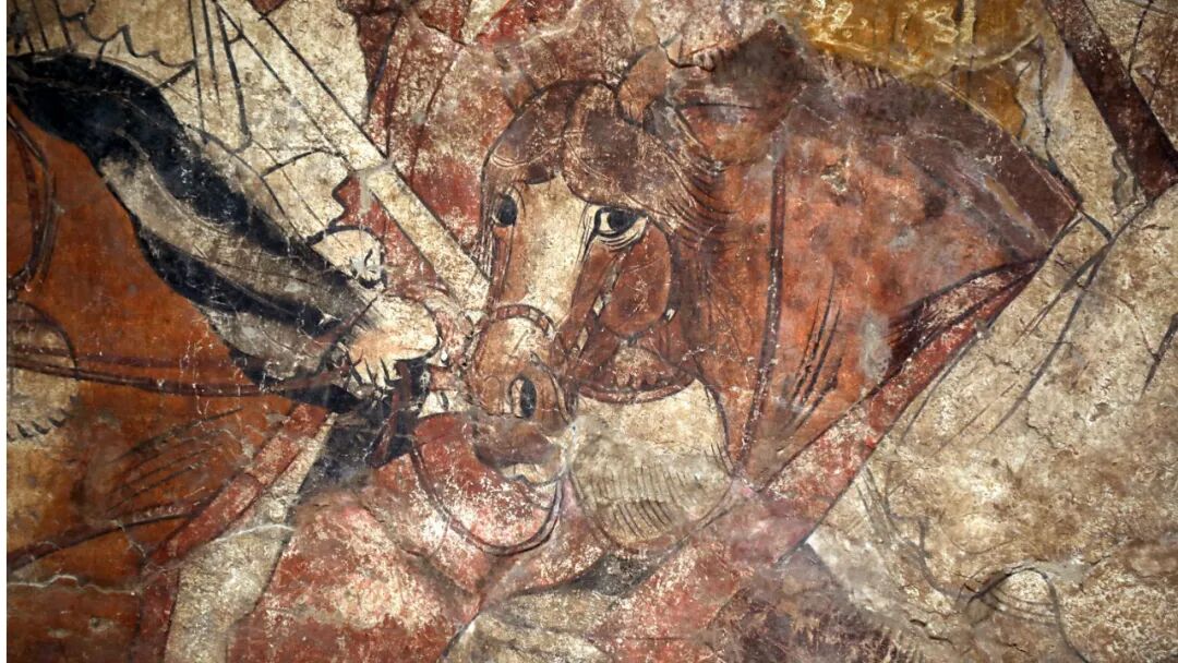 太原隋虞弘墓出土石椁彩绘局部![]()