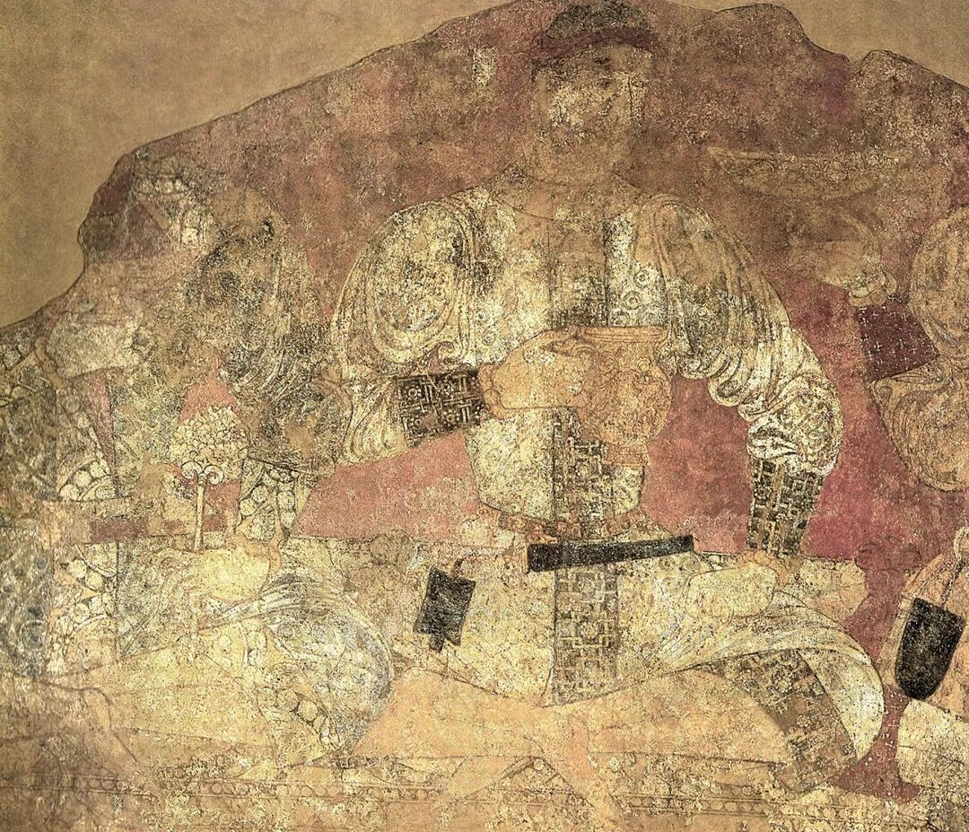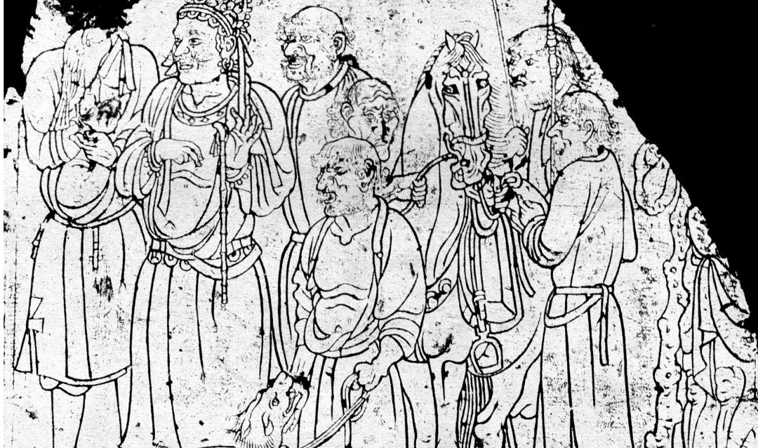 山东临朐北齐崔芬墓壁画局部![]()