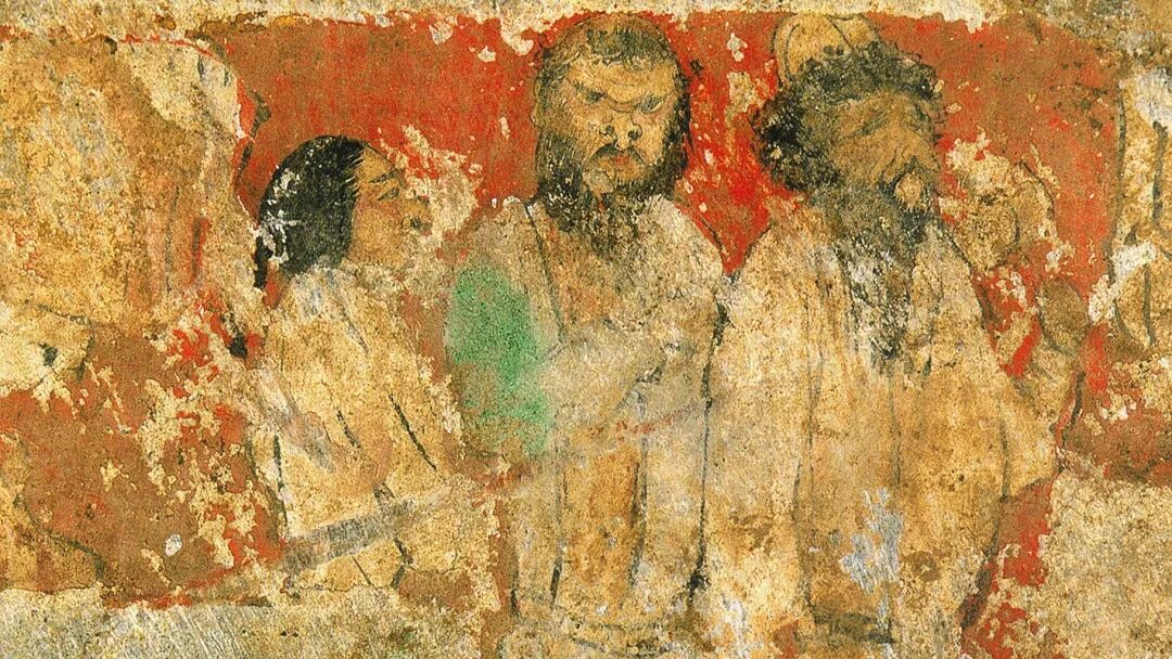 忻州九原岗北朝墓壁画局部![]()