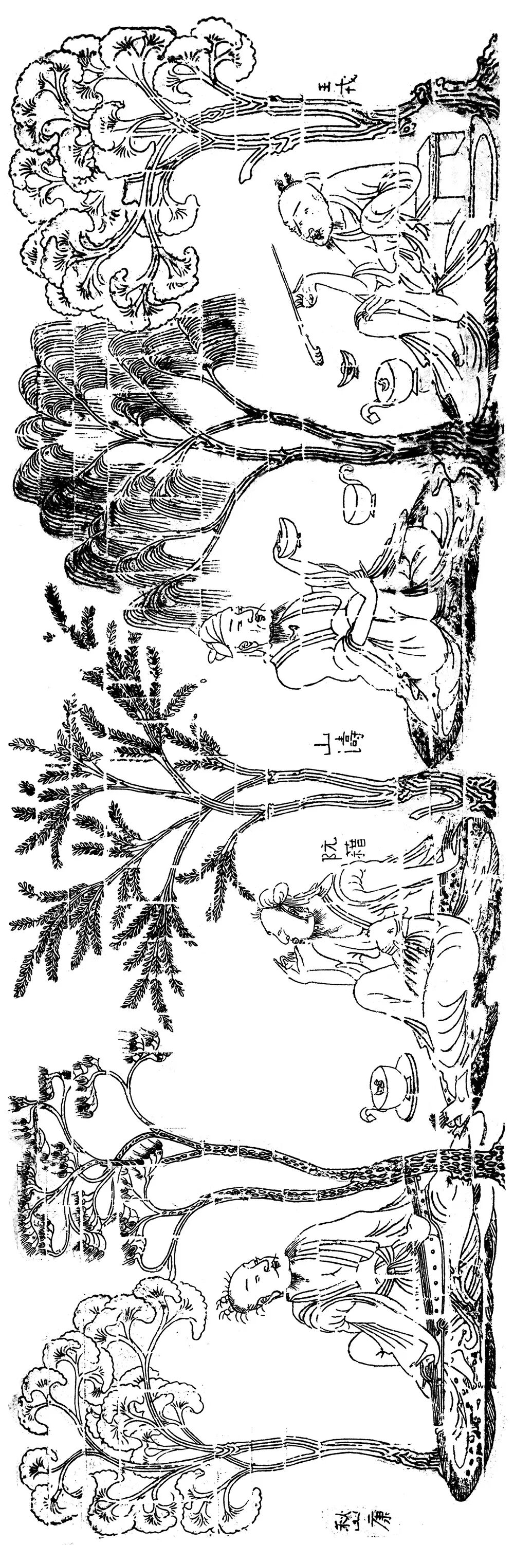 南京西善桥南朝墓出土砖画竹林七贤与荣启期图局部