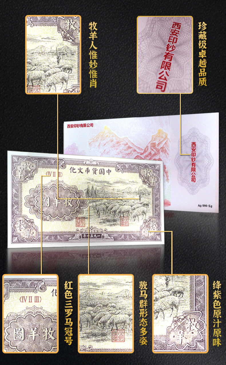 因为复刻来自西安印钞,所以技术以及“血脉”纯正!保真!高端技术、精美非常、品质牛!今天带来的复刻“牧羊图”、“牧马图”,均搭配赠送了一张《大雁塔纪念券》!![]()