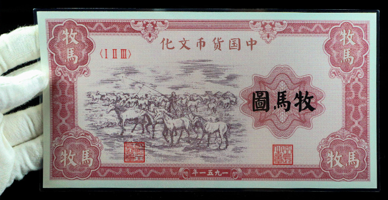 第一套人民币中牧马图存世量相当稀少,目前市场上发现的,品相在九品以上的,一个手指头就能数得过来