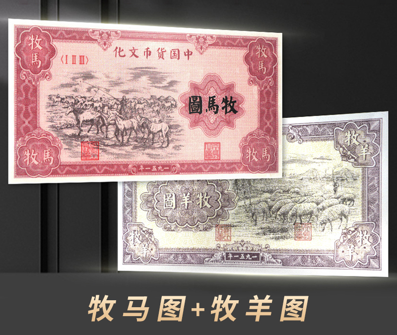 而第一套人民币中一万元面值的“牧马图”和五千元面值的“牧羊图”,都是发行于1951年,且于1955年停止流通;流通时间都不到四年。
