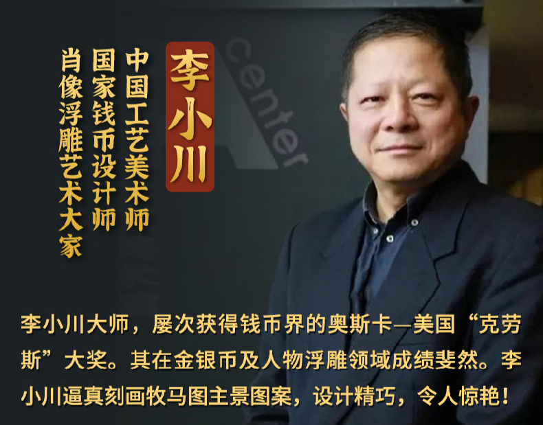 描绘的是在宽阔的草原上,一位牧人正在放牧,成群的羊在吃草,休息,行走,整张图以羊与人,羊与草原结合构成一幅非常和谐的"牧羊图"美景。今天的这套足银复刻“牧马图”、“牧羊图”,由李小川大师操刀创作!西安印钞官方发行!![]()