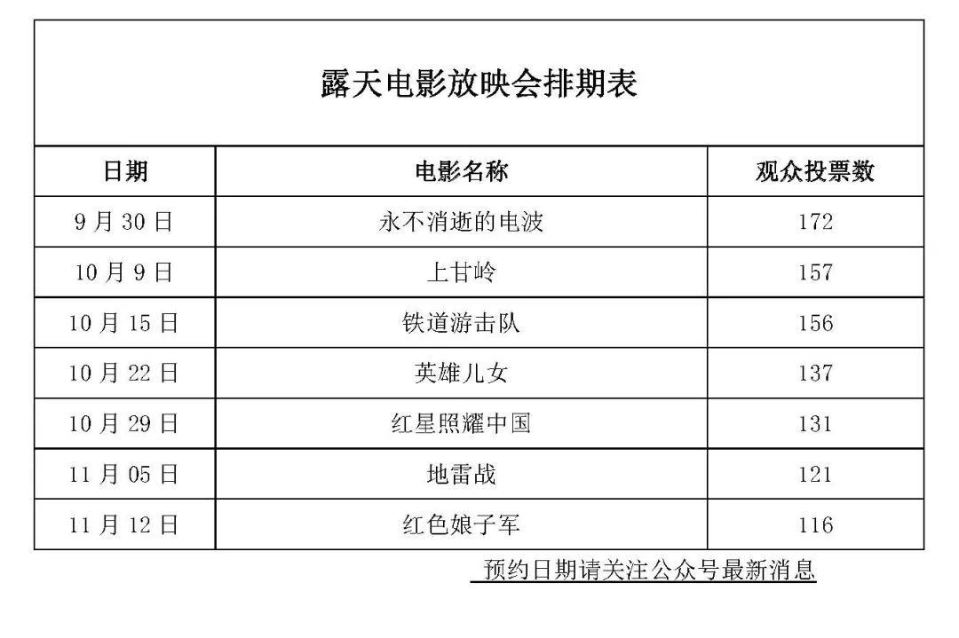 自9月18日起,每周夜间开放日将播放一部经典红色电影。在露天电影中回溯时代记忆,加强代际红色传承;在革命故事中追忆峥嵘岁月,缅怀先辈遗风;在新时期中铭记红色传统,勇担时代重任!