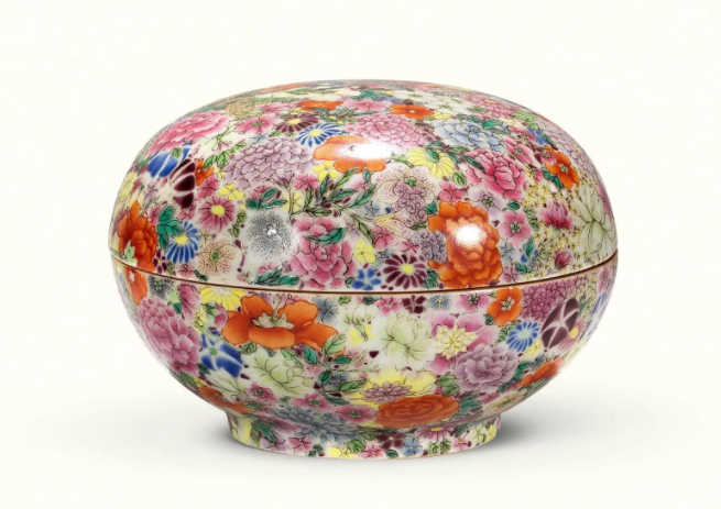 清 粉彩百花不落地盖盒