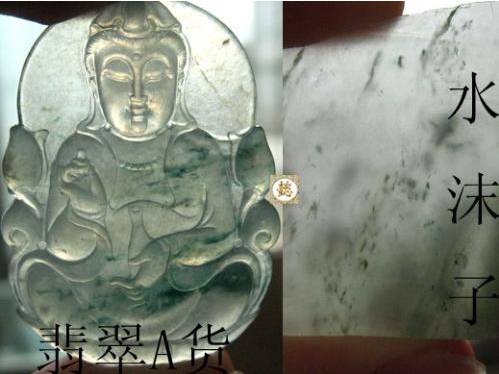 3、如果含有“飘花”,那么翡翠的花与底子相融合,而水沫子的花则像是镶嵌进去的。