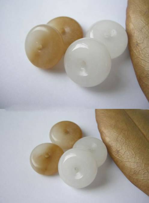 2、相同大小的翡翠和东陵玉,东陵玉要轻得多。