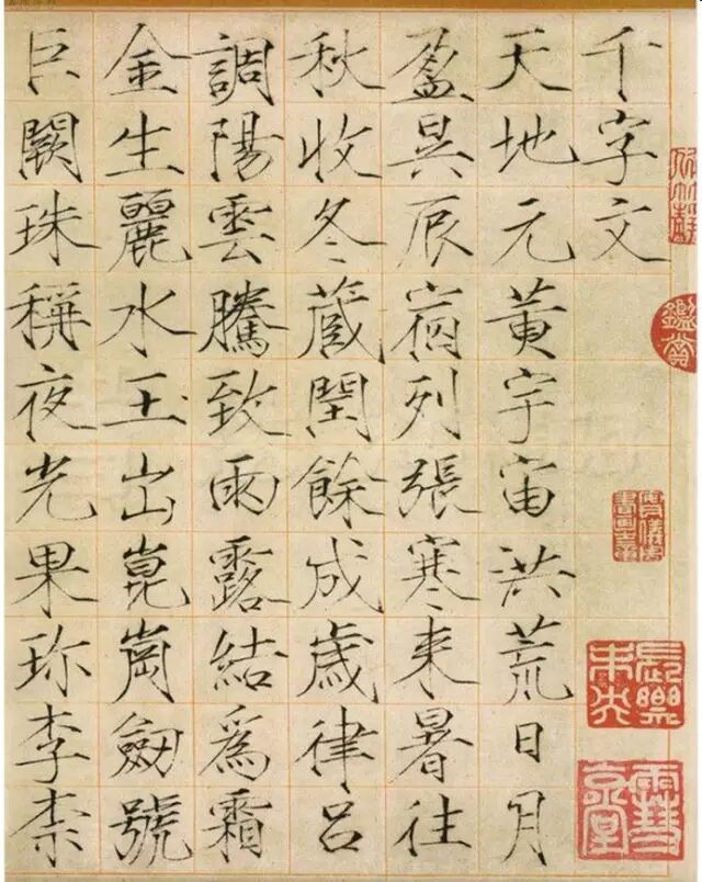 ▲宋徽宗《千字文》,楷书,卷,早期(传23岁时)作品,上海博物馆藏。