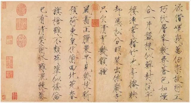 ▲宋徽宗《闰中秋月诗帖》,楷书,纸本,后期风格,北京故宫博物院藏。
