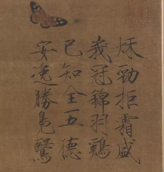 ▲宋徽宗《蜡梅山禽轴》,楷书,绢本 ,轴, 后期风格,台北故宫博物院藏。