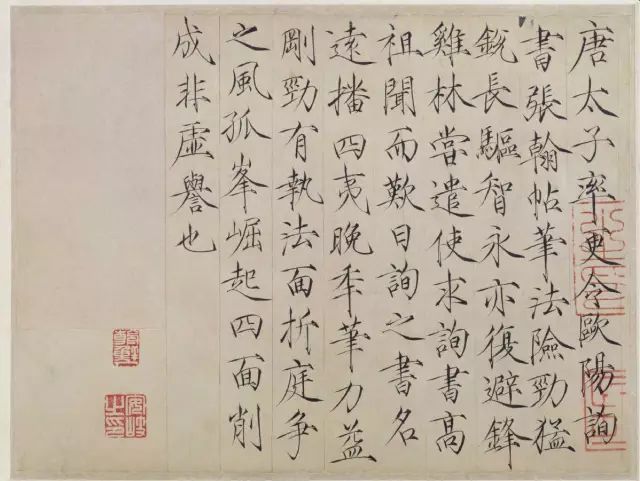 ▲赵佶《题欧阳询张翰帖后跋》,楷书,纸本,早期风格,北京故宫博物院藏。