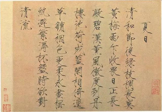 ▲赵佶《夏日诗帖》,楷书,纸本,后期风格,北京故宫博物院藏。