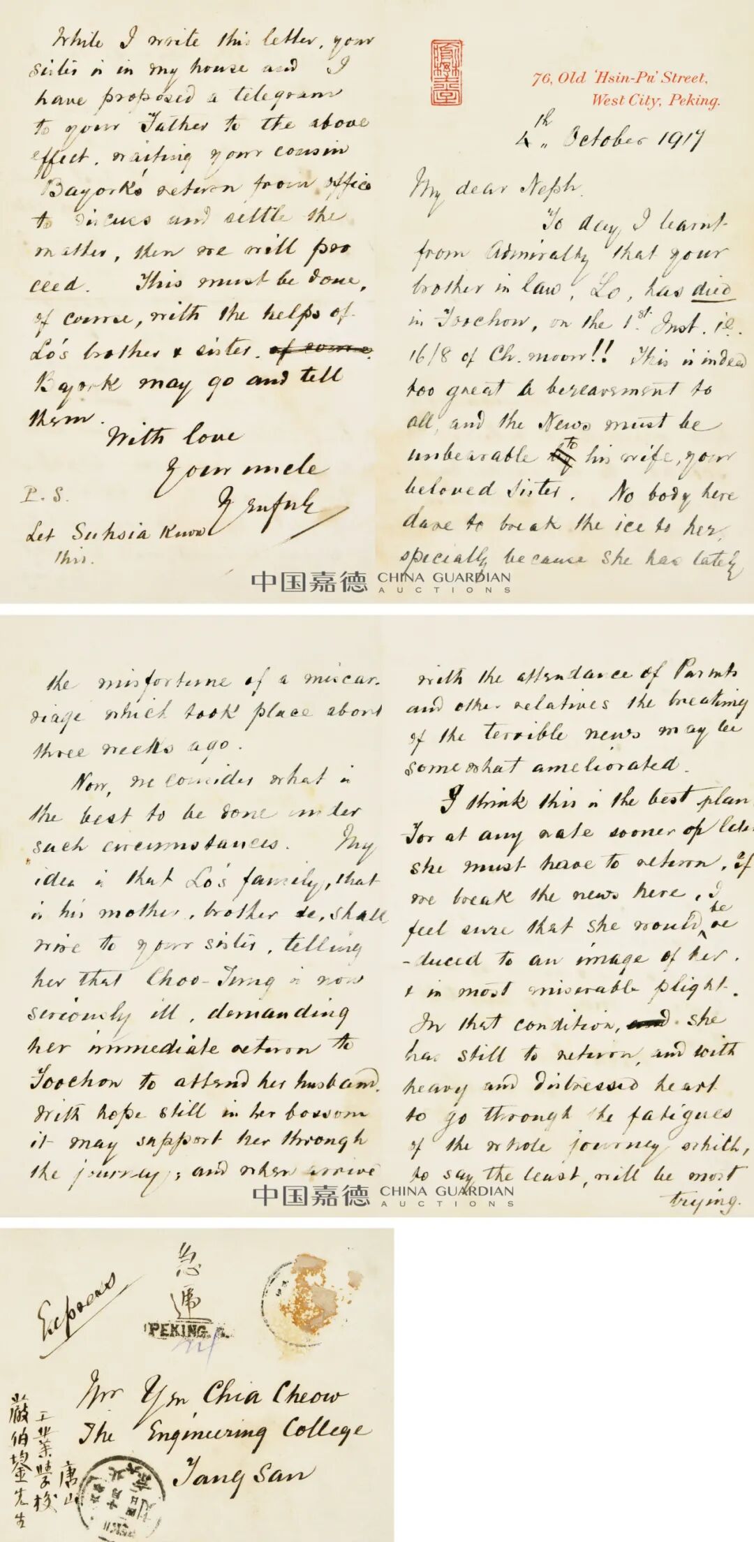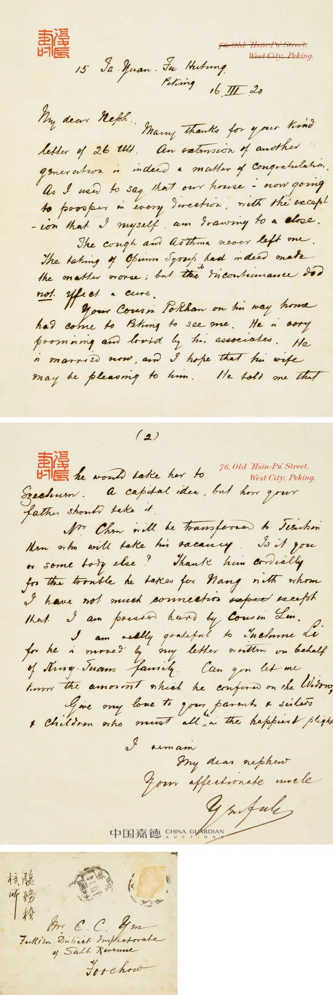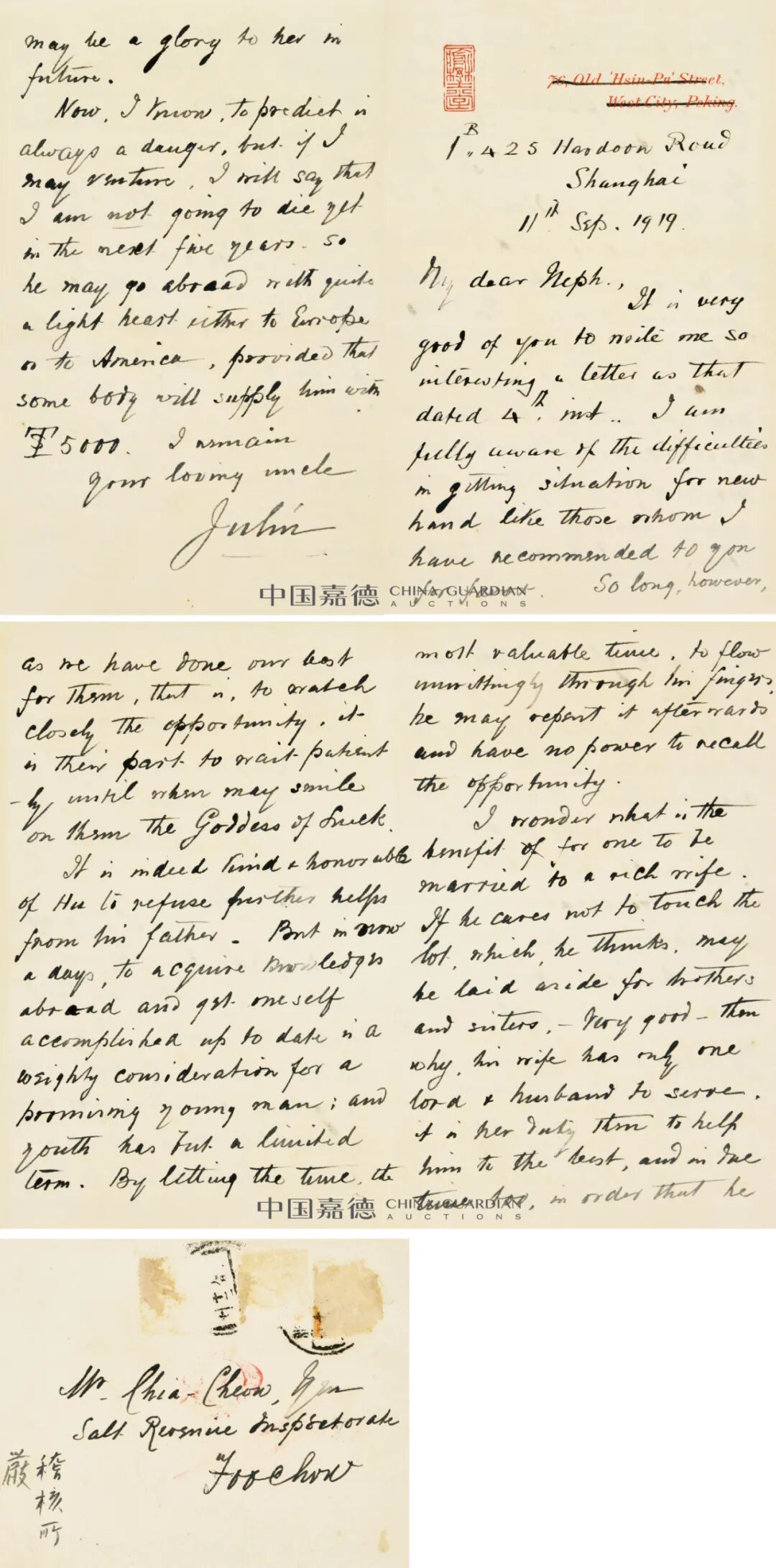 国事与家事:严复一组罕见英文信札亮相嘉德秋拍丨中国嘉德2021秋拍
