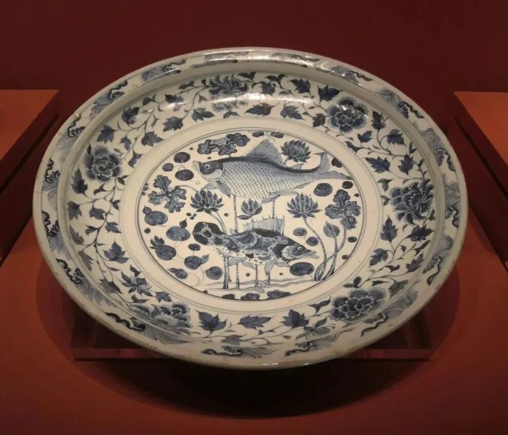 元青花双鱼莲花纹瓷盘(口径45厘米)