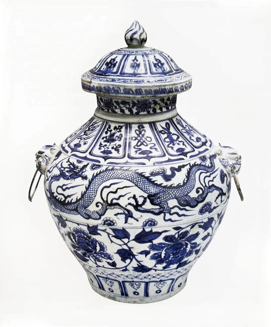 元 青花云龙纹兽耳盖罐(高47厘米)