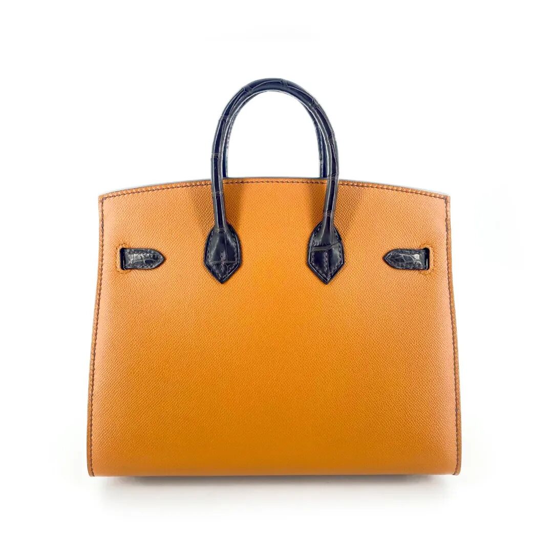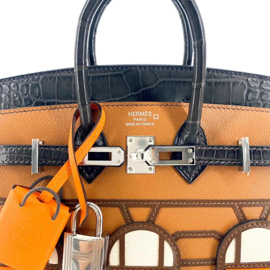 限量版霧面深棕色短吻鱷魚皮、SOMBRERO小牛皮、金色MADAME、橙色SWIFT及奶昔白色EPSOM牛皮20公分外縫FAUBOURG BIRKIN包
