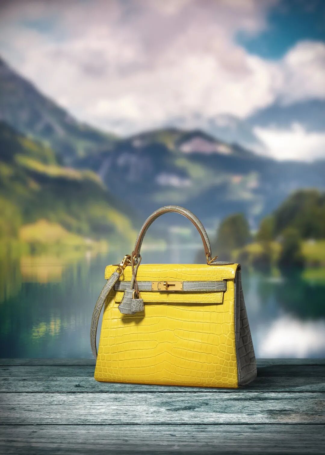 包身選用極其罕有的尼羅鱷魚皮,霧面金盞花黃色及珍珠灰色均為產量稀少的罕見顏色,是目前市場上為數不多的極品,也因此變得更加彌足珍貴。