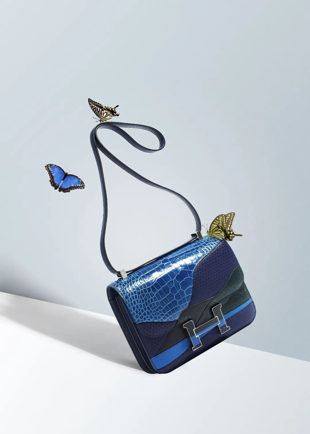限量版藍紫色,艷藍,森林綠,午夜藍色牛皮,短吻鱷魚皮及蜥蜴皮24公分