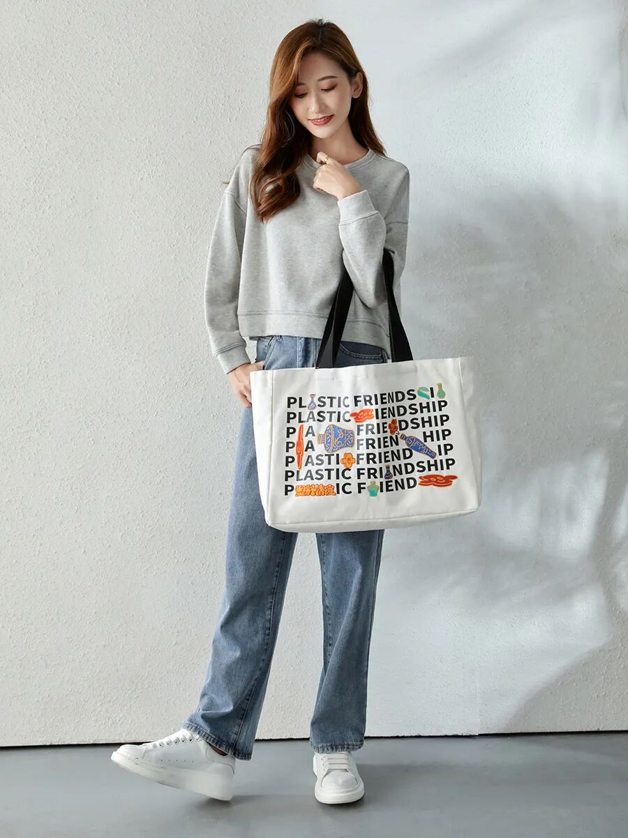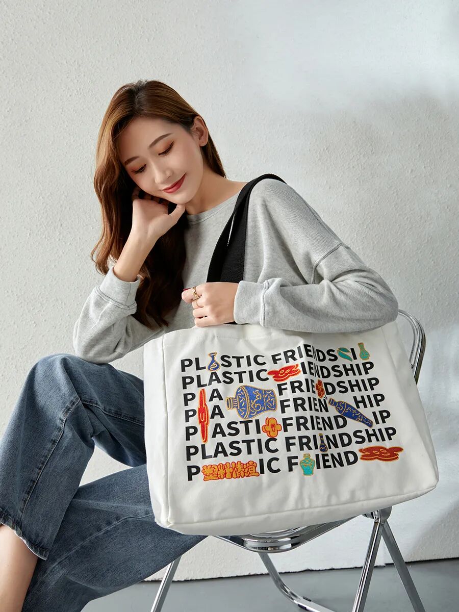 单肩包图案采用大面积字母撞色设计