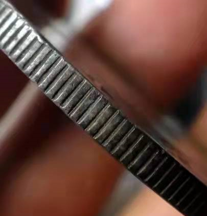 直齿边道没有弧度,齿轮效果是规整的矩形;橄榄齿边道有弧度,齿轮视觉效果两端宽,中间窄。
