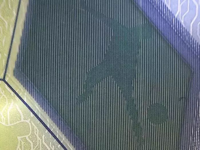 微缩图案:在面值数字中,分别印有踢球场景、足球微缩图案。▲在面值数字中,印有足球花纹