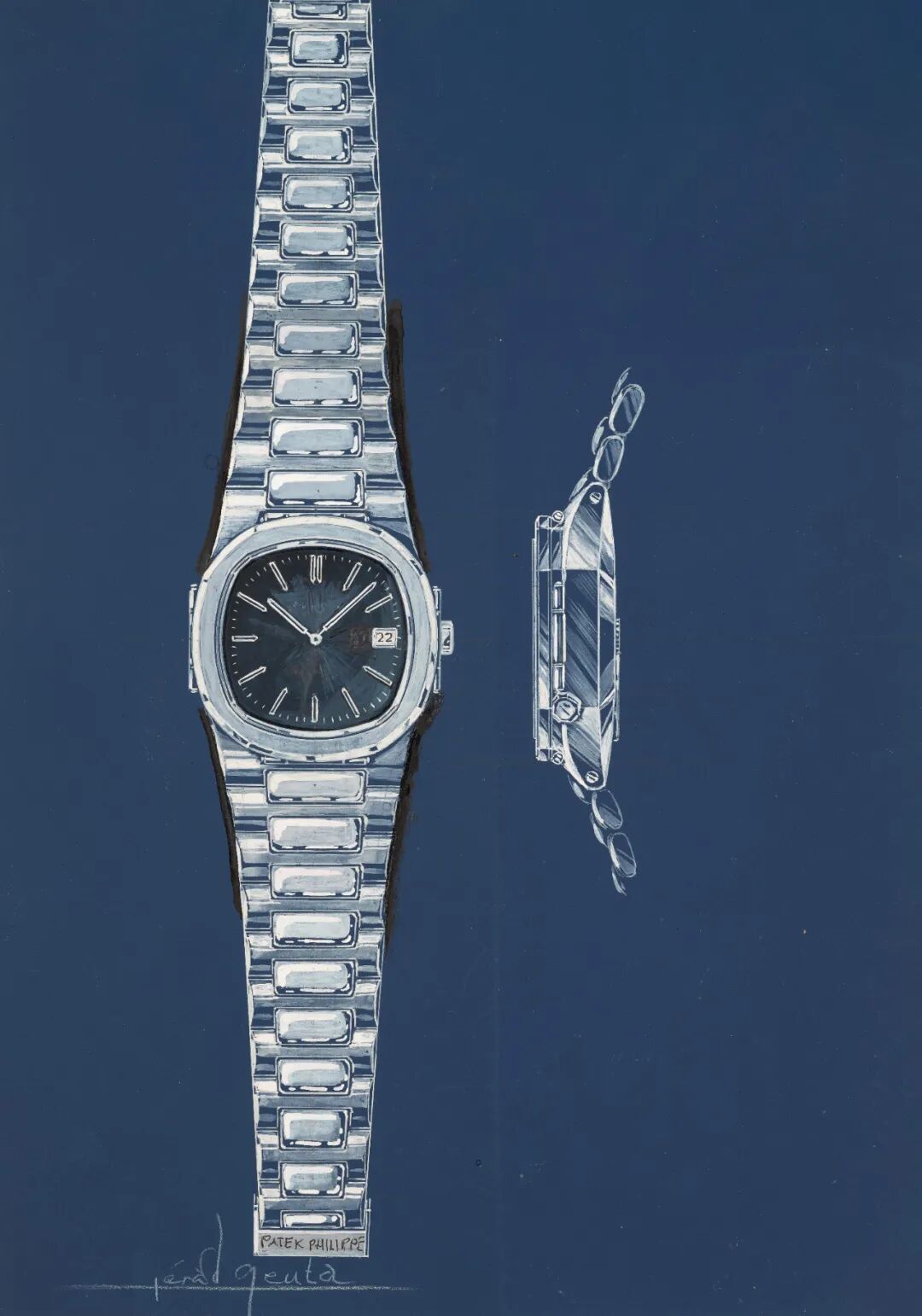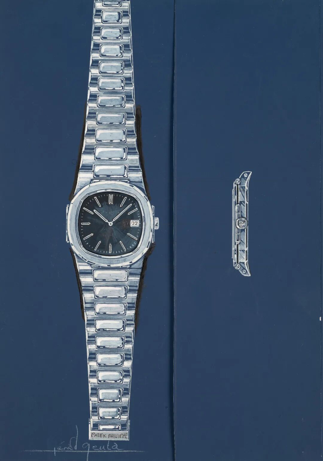 1976年,尊达于巴塞尔表展(Basel Fair)期间到访三王酒吧(Drei Knigebar),在酒吧巧遇百达翡丽的首席执行官(CEO)菲利普.斯登(Philippe Stern),刺激他考验自己能否为百达翡丽设计一款精钢运动腕表。尊达一边观察着酒吧另一端的百达翡丽团队,一边在5分钟内于一张餐巾上完成了他的设计。其后,百达翡丽刚好邀请尊达设计一款精钢的奢华腕表,而尊达的设计早已恭候多时。这是尊达众多创作中唯一能两边折迭、并对表侧及表冠备两种不同选项的设计。1976年尊达同时呈上这两款各具特色的作品,其中一款成为了现时广为人熟悉的Nautilus,而未被采用的一款则在这次拍卖中曝光。