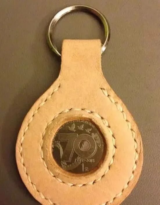 之前就有网友给纪念币缝了个皮套,做成钥匙扣,方便随时欣赏: