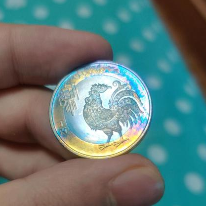 那边战损版纪念币一出现,这边立马有网友分享了自己的“五彩包浆”版二轮鸡年纪念币: