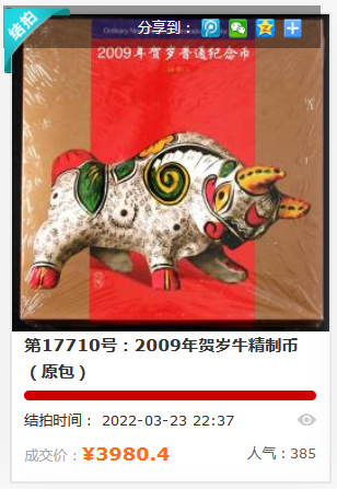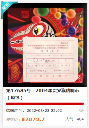 贺岁系列,原包价格均比年前有比较明显的上涨,从出价情况及结果来看能感觉到大家强烈的购买欲望。