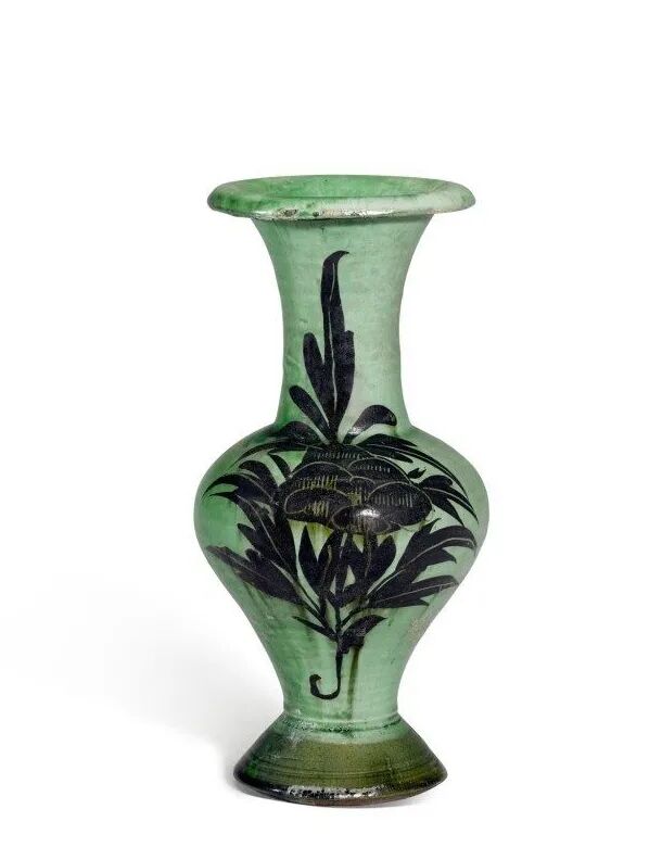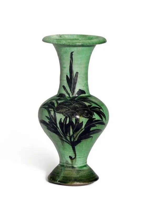 Lot 115 宋/金 磁州窑绿釉墨彩牡丹纹卷口瓶