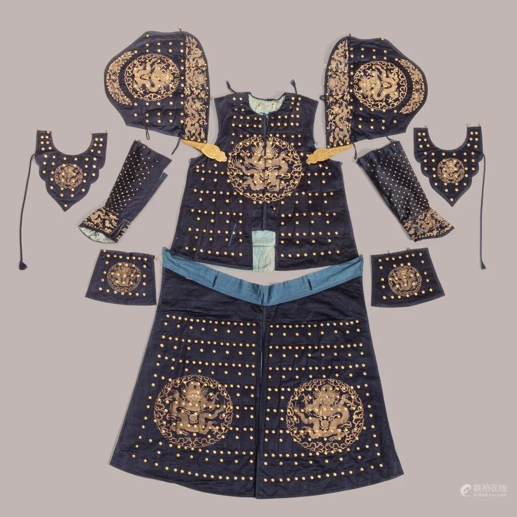 Lot 328 清乾隆 御制石青缎绣团龙纹仪仗钉甲一副拍品估价:100,000 - 150,000 英镑1.《From the Land of Asia》,Pointe-à-Callière 博物馆,蒙特利尔,2016年11月17 - 2017年3月19日;2.《From the Land of Asia》,Kimbell美术馆,德克萨斯,2018年3月4 - 8月19日