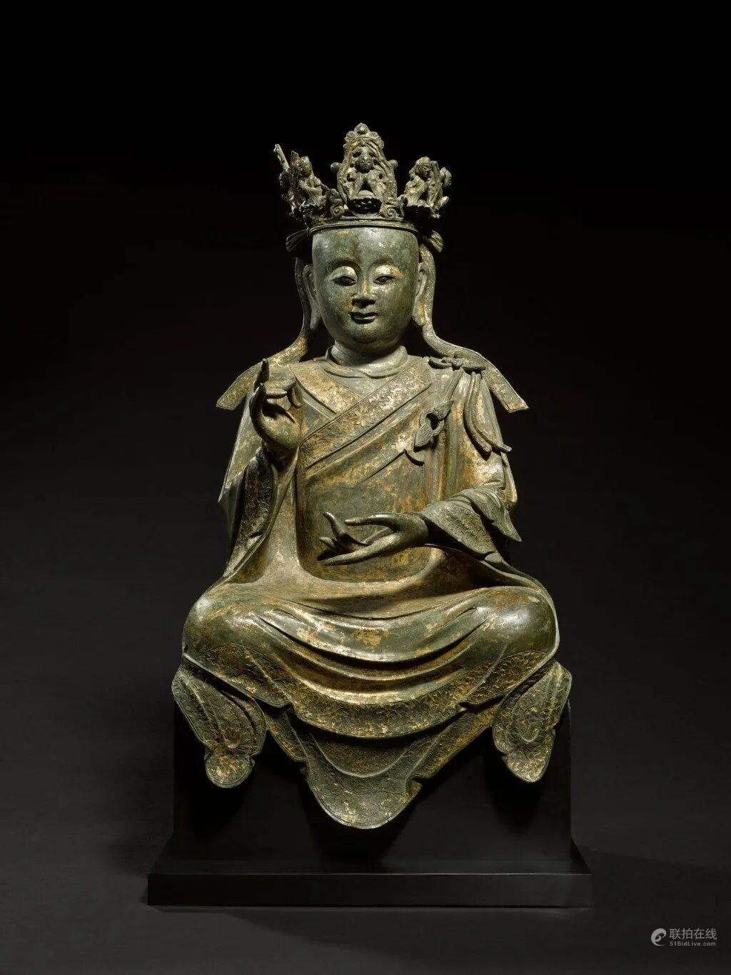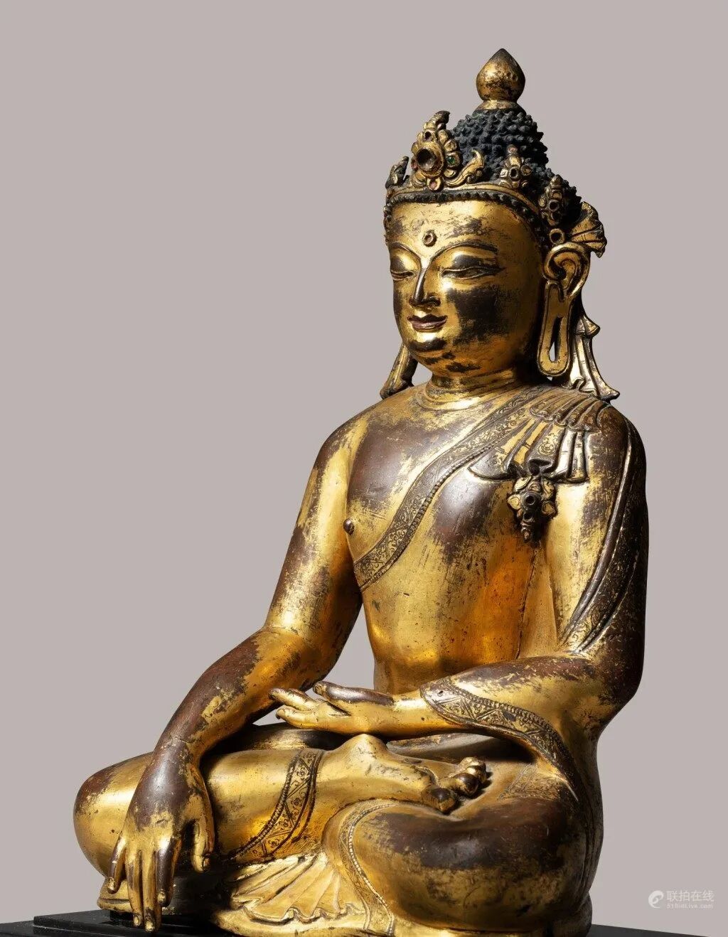Lot 332 尼泊尔 十四/十五世纪 鎏铜合金佛坐像