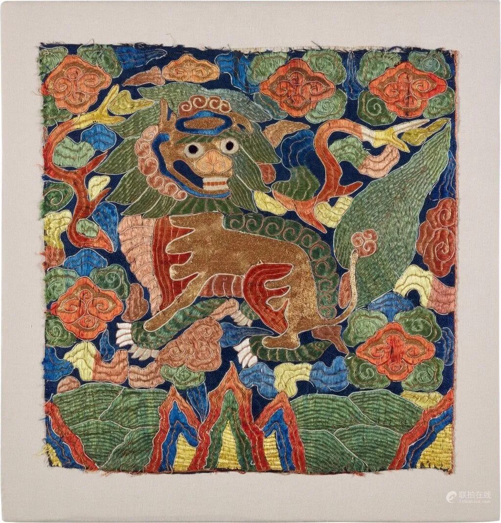 Lot 319 明十七世纪 刺绣二品武官狮子纹补子1.《From the Land of Asia》,Pointe-à-Callière 博物馆,蒙特利尔,2016年11月17 - 2017年3月19日;2.《From the Land of Asia》,Kimbell美术馆,德克萨斯,2018年3月4 - 8月19日