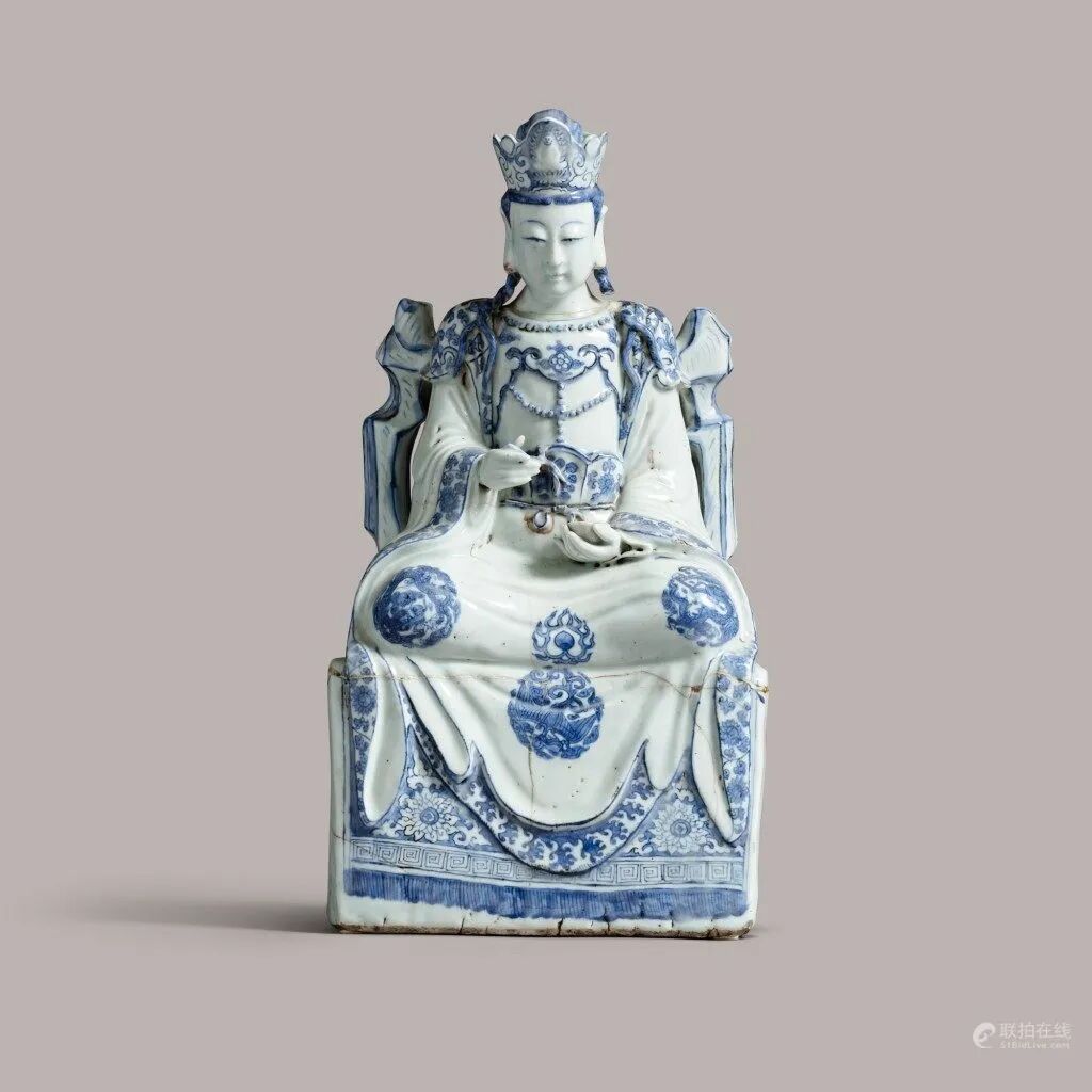 除本文开篇所提及的元 青花龙凤纹梅瓶外,本场值得重点关注的还有一组精美的明代青花瓷、一组珍贵罕见的高古玉,以及一件尼泊尔 十四/十五世纪 鎏铜合金佛坐像等。