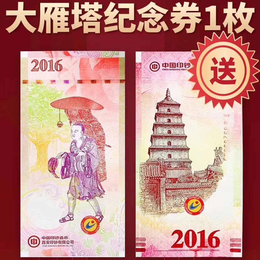 大雁塔纪念券,将佛教文化与现代尖端的印钞工艺结合,展现了中国佛教建筑艺术的瑰丽,具有一定的文化价值和收藏价值。